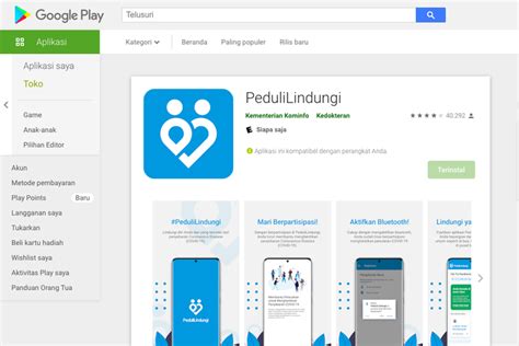 Penting untuk memastikan bahwa Aplikasi Pedulilindungi memiliki izin yang diperlukan di perangkat Anda. Buka pengaturan perangkat, cari dan pilih "Aplikasi" atau "Manajemen Aplikasi", lalu temukan Aplikasi Pedulilindungi dalam daftar aplikasi yang terpasang. Pastikan izin seperti lokasi, penyimpanan, dan akses data lainnya diaktifkan. Dengan mengizinkan akses ini, Aplikasi Pedulilindungi dapat berfungsi secara optimal dan memberikan informasi yang diperlukan.